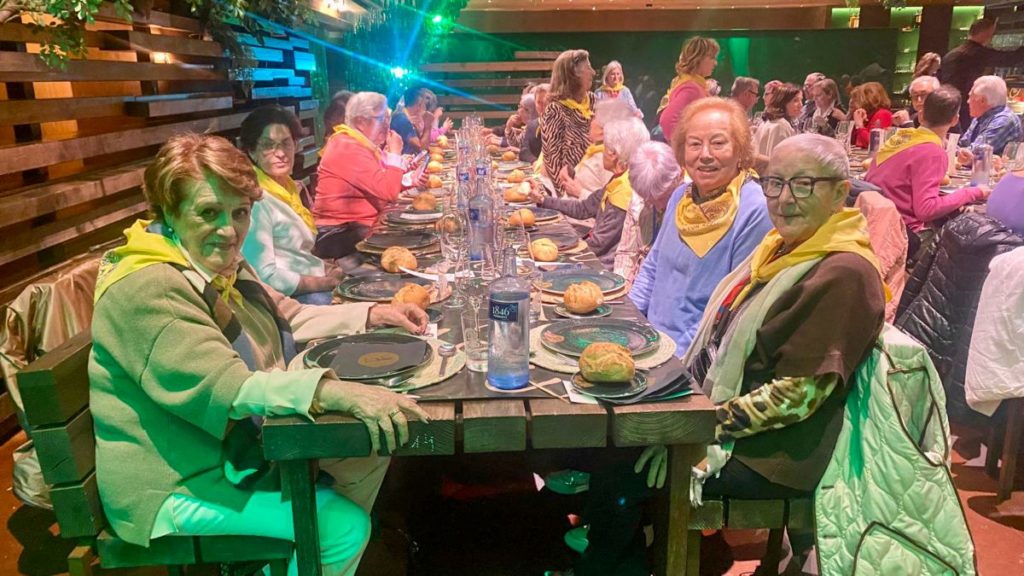 Para finalizar, copiosa comida en “El Tierra Astur El Vasco” en la que no faltó la tabla de quesos asturianos, la fabada, el cachopo y el arroz con leche; tampoco la sidra, bajo un techo del que penden miles de botellas ya bebidas.