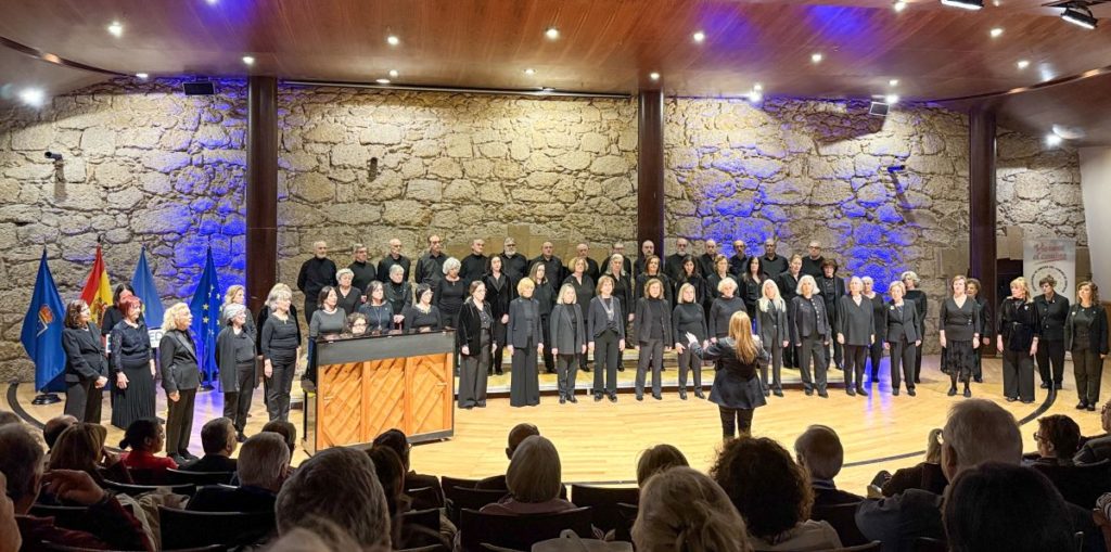 El acto concluyó musicalmente. Muy destacada fue la actuación del Orfeón Principado, creado por el Colegio de Médicos de Asturias. Se trata de un coro joven, creado en 2021, pero muy numeroso, más de 70 voces. En esta actuación había 15 voces masculinas y 42 femeninas, además de una rapsoda, Olga Rico, una pianista, Helena Santos y la directora, Patricia Miriam Martínez; sorprendió por su calidad. Y por lo que se refiere al repertorio todos coincidimos en calificarlo de exquisito y original; fue una única pieza, denominada “Que me espere!” conducida como peregrinación por el Camino Primitivo por seis etapas a través de territorios de Asturias y Galicia que contenían por cada una de ellas (Oviedo, Salas, Puerto del Palo, Lugo, Melide y Santiago), una introducción poética, recitada por la rapsoda, seguida de breve introducción de piano y concluida por una canción popular cantada por el coro a varias voces.