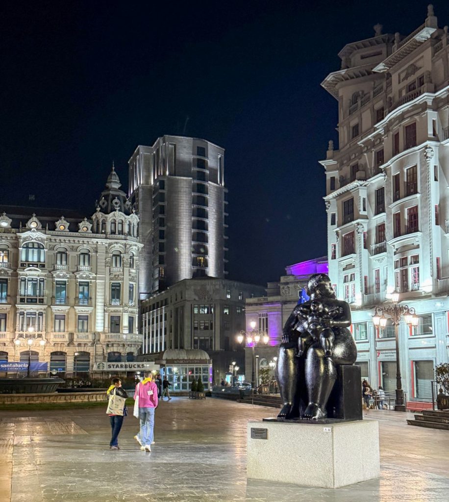 En esta breve estancia en la ciudad nos hemos encontrado, entre ir y venir de turistas y lugareños, con sugerentes esculturas que ensalzan tanto a personajes de reconocimiento internacional como Mafalda, ilustres asturianos o de oficios que hasta el siglo XX se podían ver en las calles; hay más de un centenar.