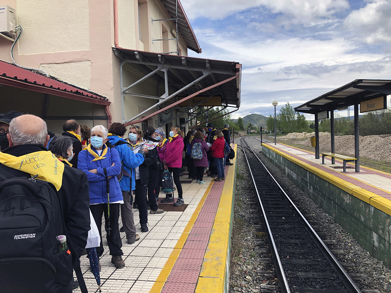 Se trata de una etapa acogida con muchísima ilusión y alegría después de muchos meses inactivos a causa de la pandemia del covid. La salida tenía el aliciente de trasladarnos en el Ferrocarril de la FEVE. La primera parte del recorrido tenía lugar entre la localidad de Barrillos de las Arrimadas y Boñar, con una distancia de 8’6 Kilómetros.