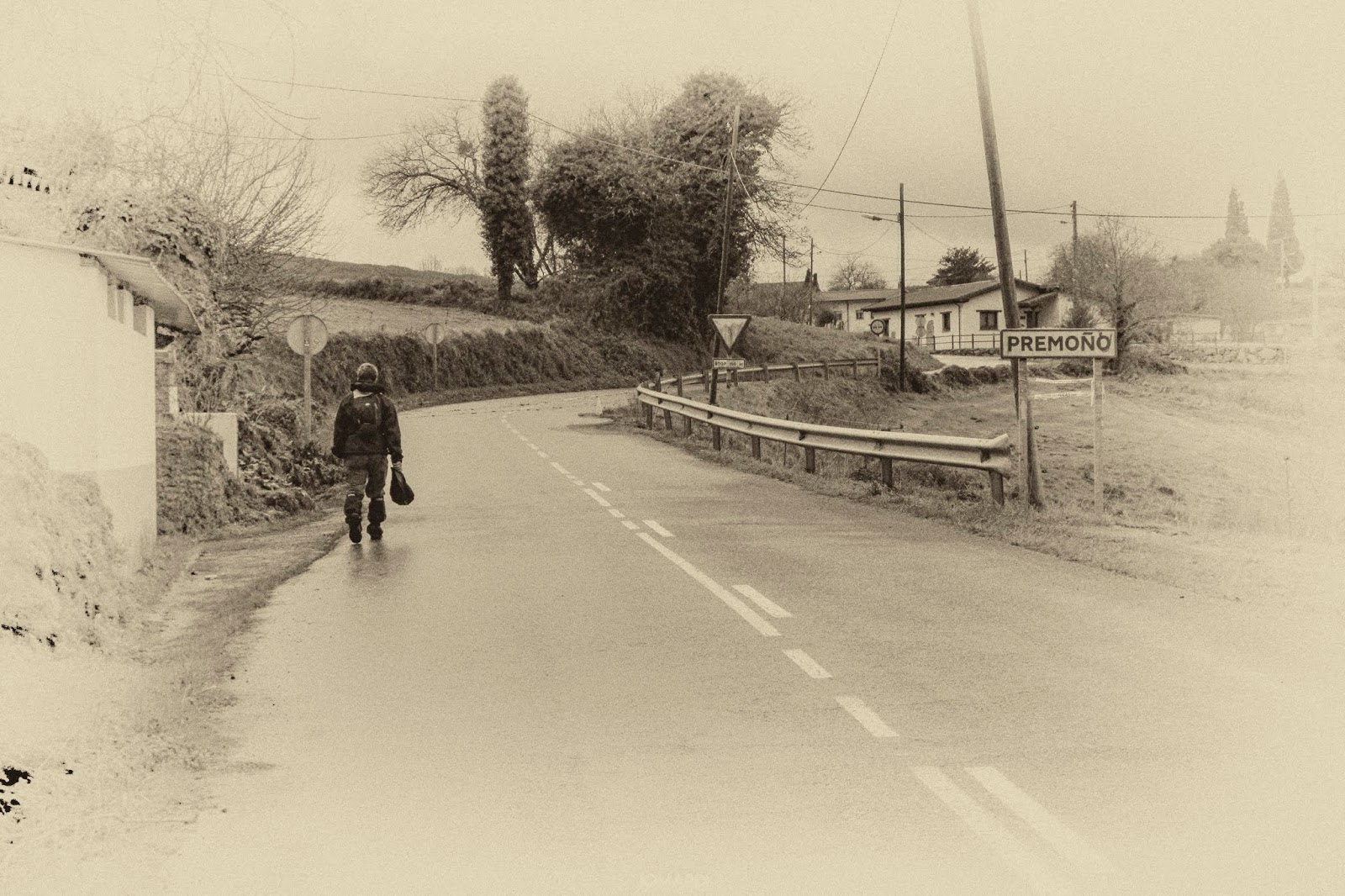 Con las cantimploras vacías y los gemelos tirando hacia abajo coronamos meta, los más de 3 Kms. que faltan para Premoños discurren por un camino mucho más llano. Aldeas, vacas y ladridos es lo que nos salen al paso, por terrenos de piedras, hojas secas y agua, los ríos llevan un gran y farragoso cauce, las vías del tren hacen su aparición de vez en cuando.