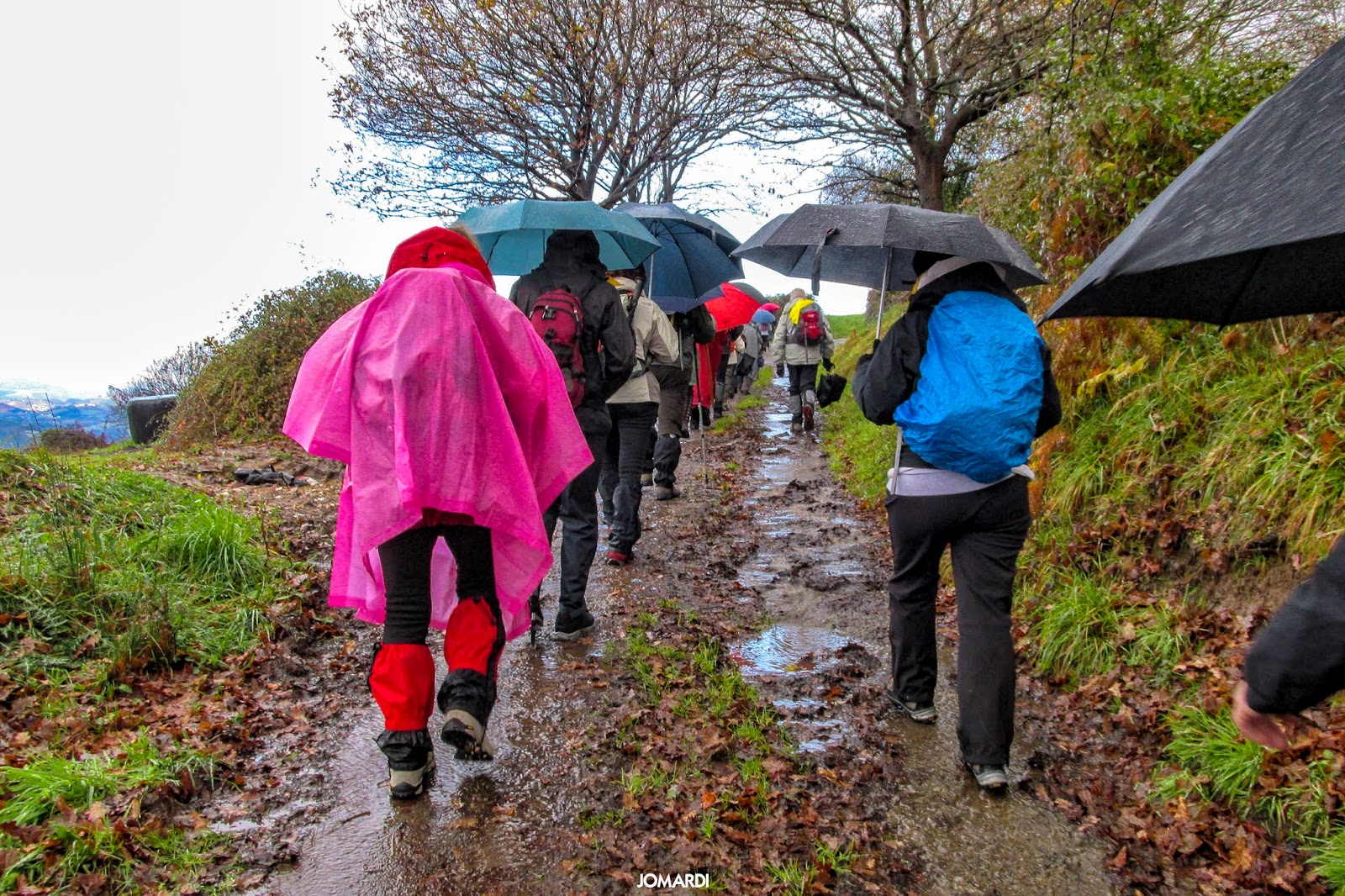Bajo la lluvia buscamos refugio y alimento. Los locales de la zona se llenan de caminantes en busca del desayuno. Confortados por la bendición y fortalecidos por el alimento, emprendemos un camino de lluvia, sol, frío y calor.
