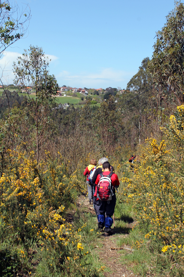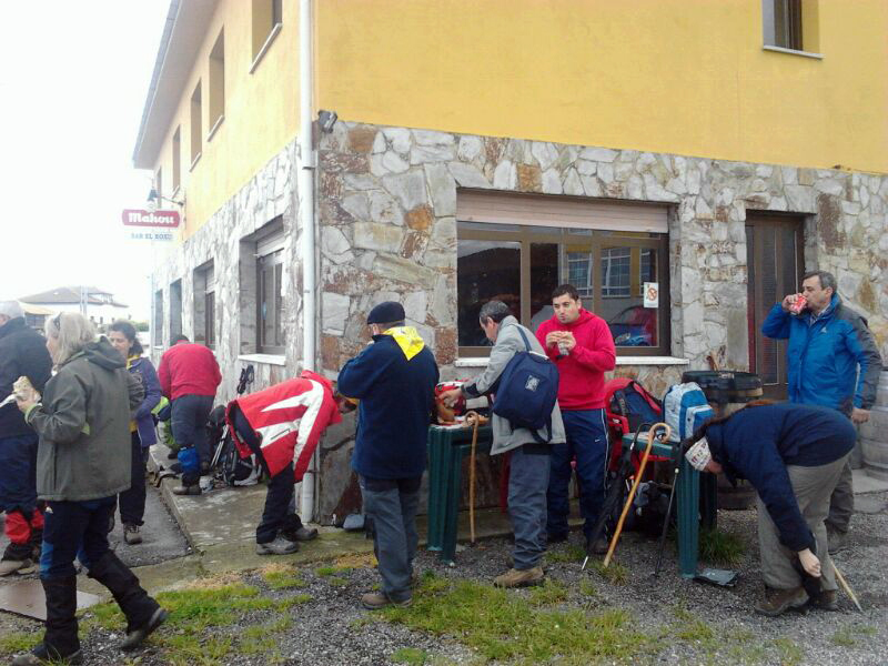 El domingo pasado llenamos dos autocares para realizar otra estupenda etapa asturiana del Camino del Norte. En esta ocasión caminamos desde Novellana hasta la Playa de Cueva en una sucesión de constantes subidas y bajadas. Al llegar a Novellana paramos lo justo para tomar café o un bocadillo antes de comenzar a caminar.