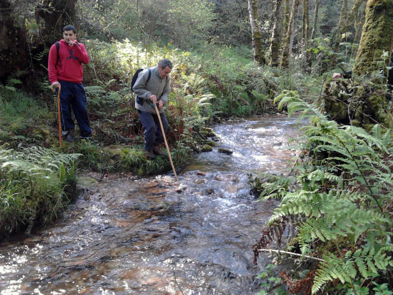 El camino hasta Santa Marina resultó muy entretenido con el sendero entre bosquecillos y un arrollo que bajaba crecido y dio lugar a alguna situación divertida.