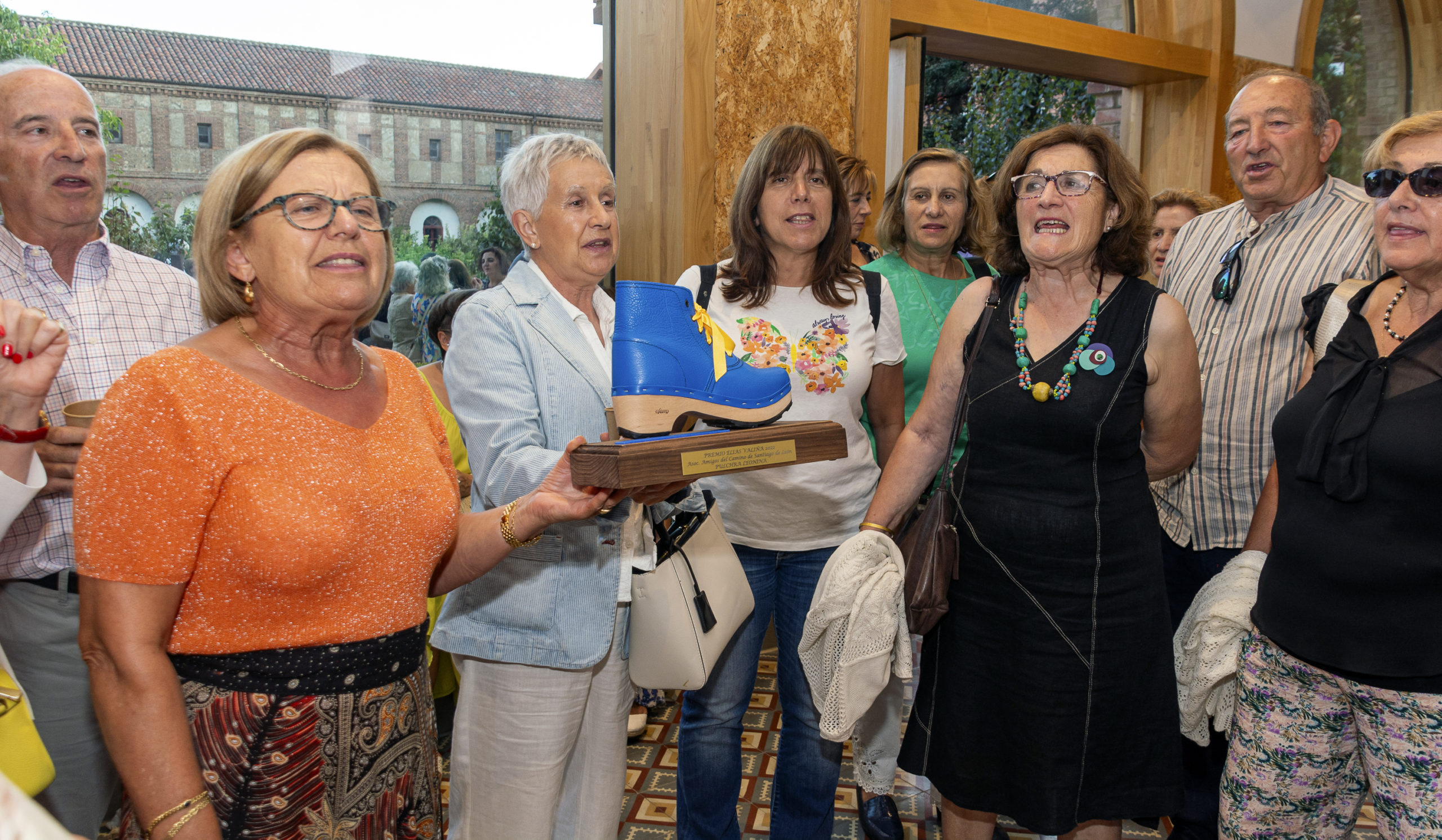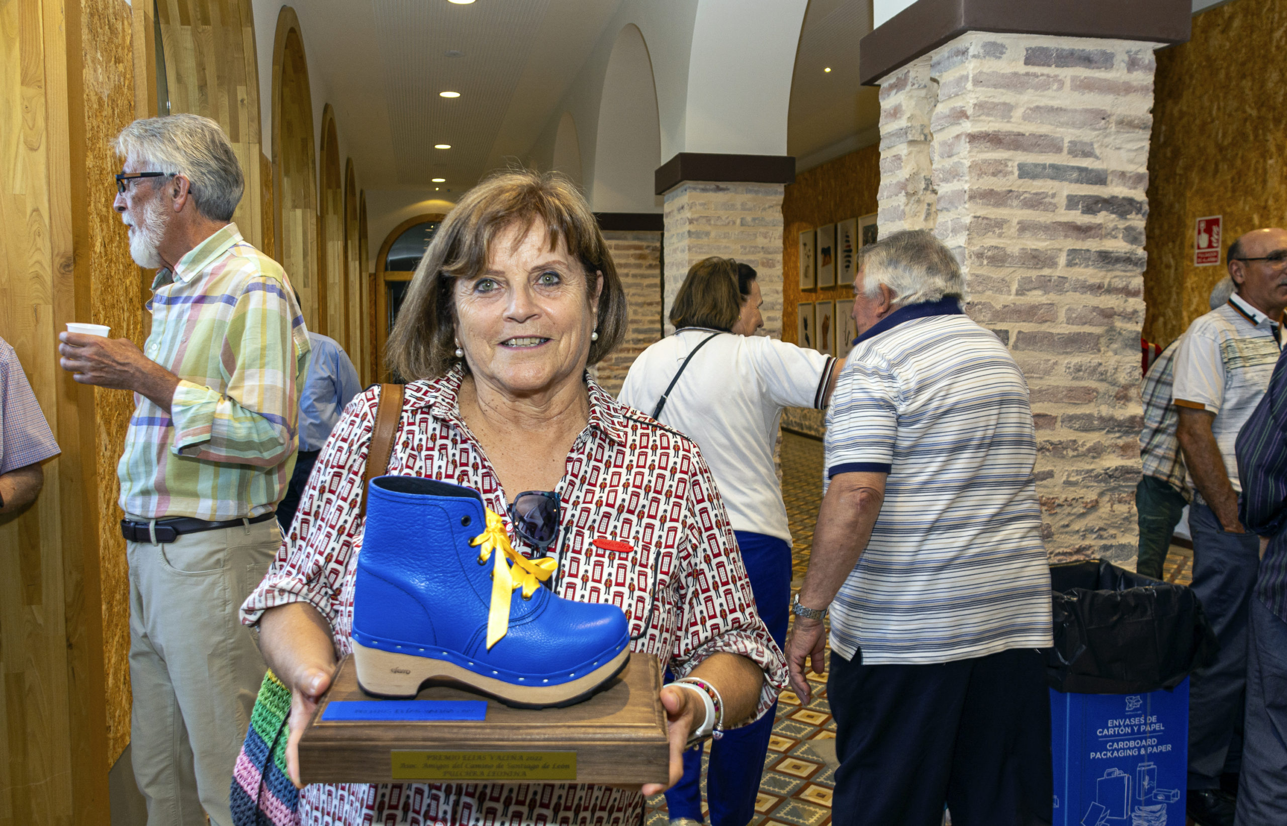 donde estuvo expuesto el zapato y el diploma, que acredita a nuestra asociación, como ganadores del premio Elías Valiñas del año 2022, y en torno a la mesa compartimos los alimentos y al mismo tiempo convivimos hablando del Camino de Santiago.