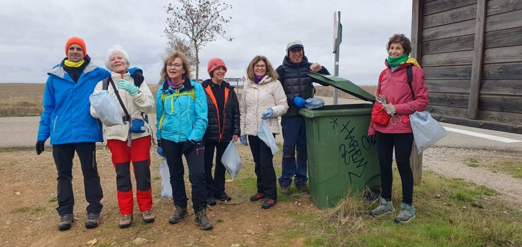 En tres grupos de catorce y uno de trece personas se reparten los viajeros, todos ellos provistos con guantes, bolsas de basura, algunos con palo/pincho y otros con bastón pinza.