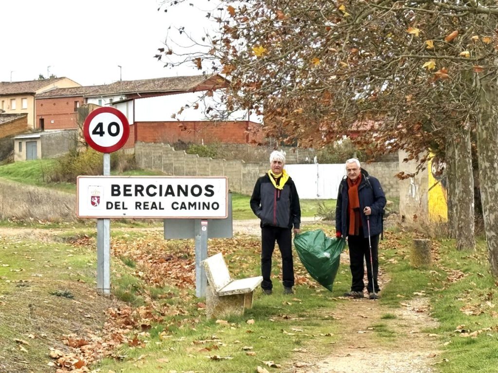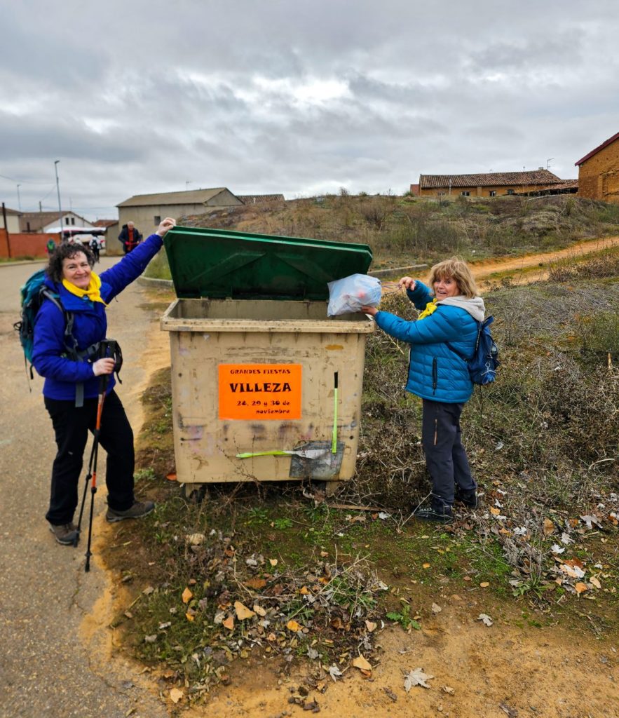 El cuarto y último grupo llegará a Bercianos del Real Camino sobre las 10’30 horas de la mañana. No ven nada abierto para tomar un café y se ponen a andar tratando de encontrar residuos que al principio se resisten un poco, pero que luego se ven en las zonas de descanso y el que la carretera y la Vía Xacobea, estén separadas por una cuneta, no sabemos si lo que encontramos en esta procede de los penitentes o de las ventanillas de los coches rodantes.