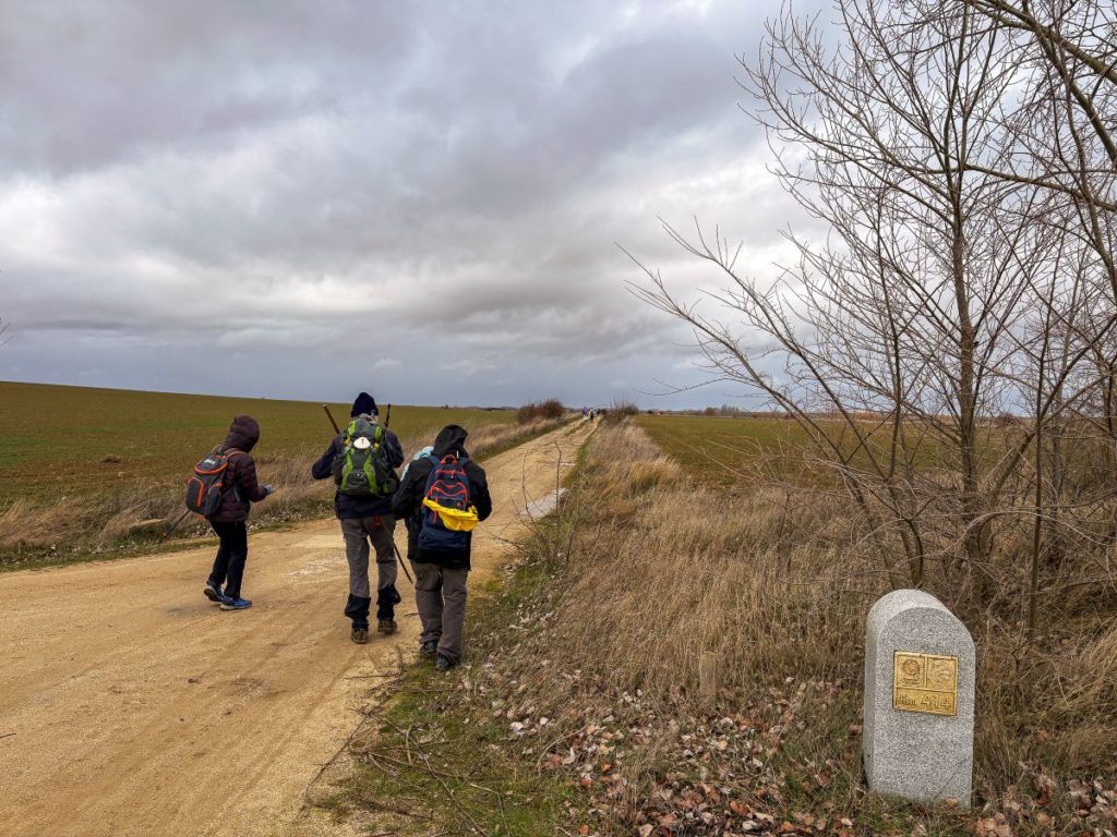 Retomamos la marcha por el arcén de la VP-4008 hasta Cuenca de Campos, final de etapa. Los 10 kilómetros restantes, los recorrimos por el arcén de la comarcal VP-4008; aun así, se hicieron duros por el viento frío y una fina lluvia, pero el ánimo se mantuvo firme.