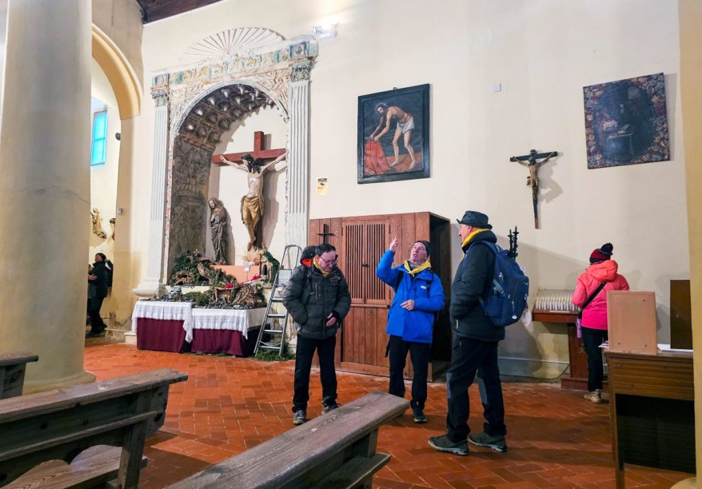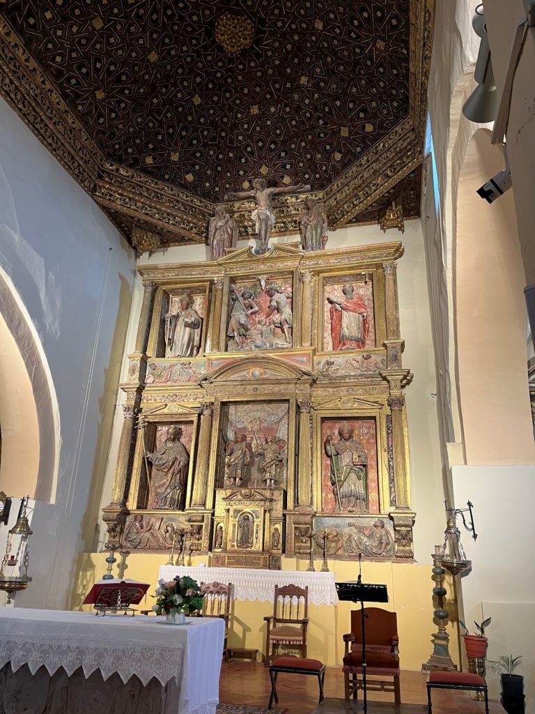 Cuando llegamos, el trato fue excepcional por los parroquianos del pueblo. El Alcalde y suTeniente de Alcalde, a la cabeza,nos abrieron el albergue municipal con enorme amabilidad. También pudimos visitar, gracias al programa Museos Abiertos de la Diputación de Valladolid, la iglesia de los Santos Justo y Pastor, templo renacentista mudéjar del siglo XVI, con un impresionante artesonado y un retablo de gran valor.