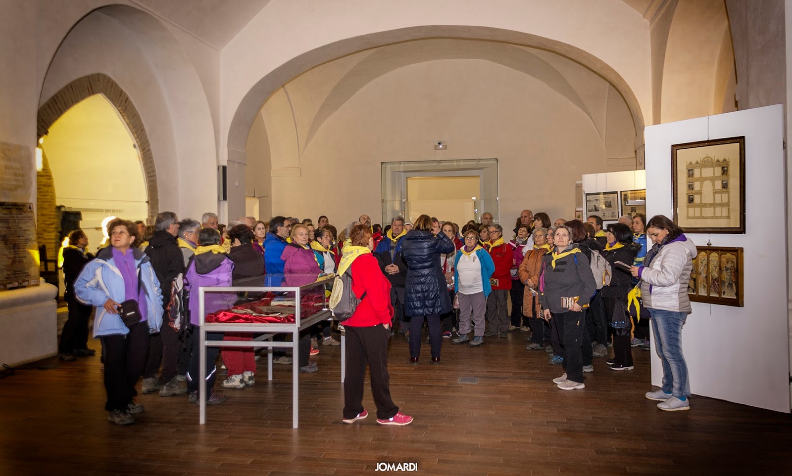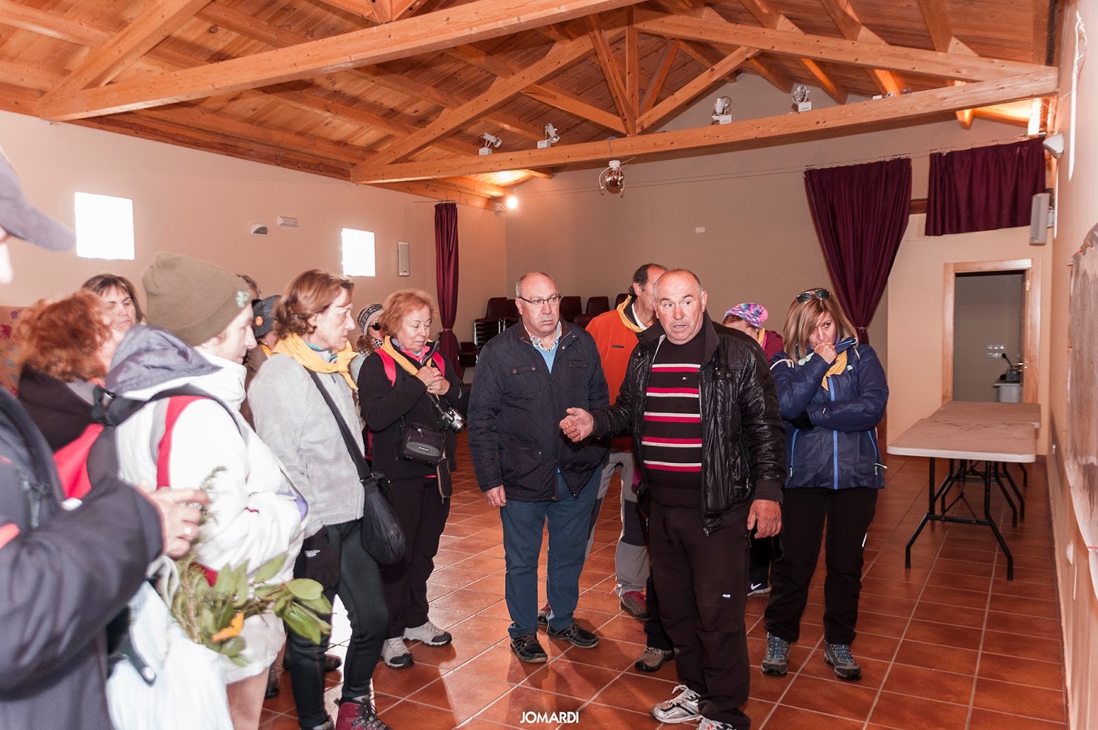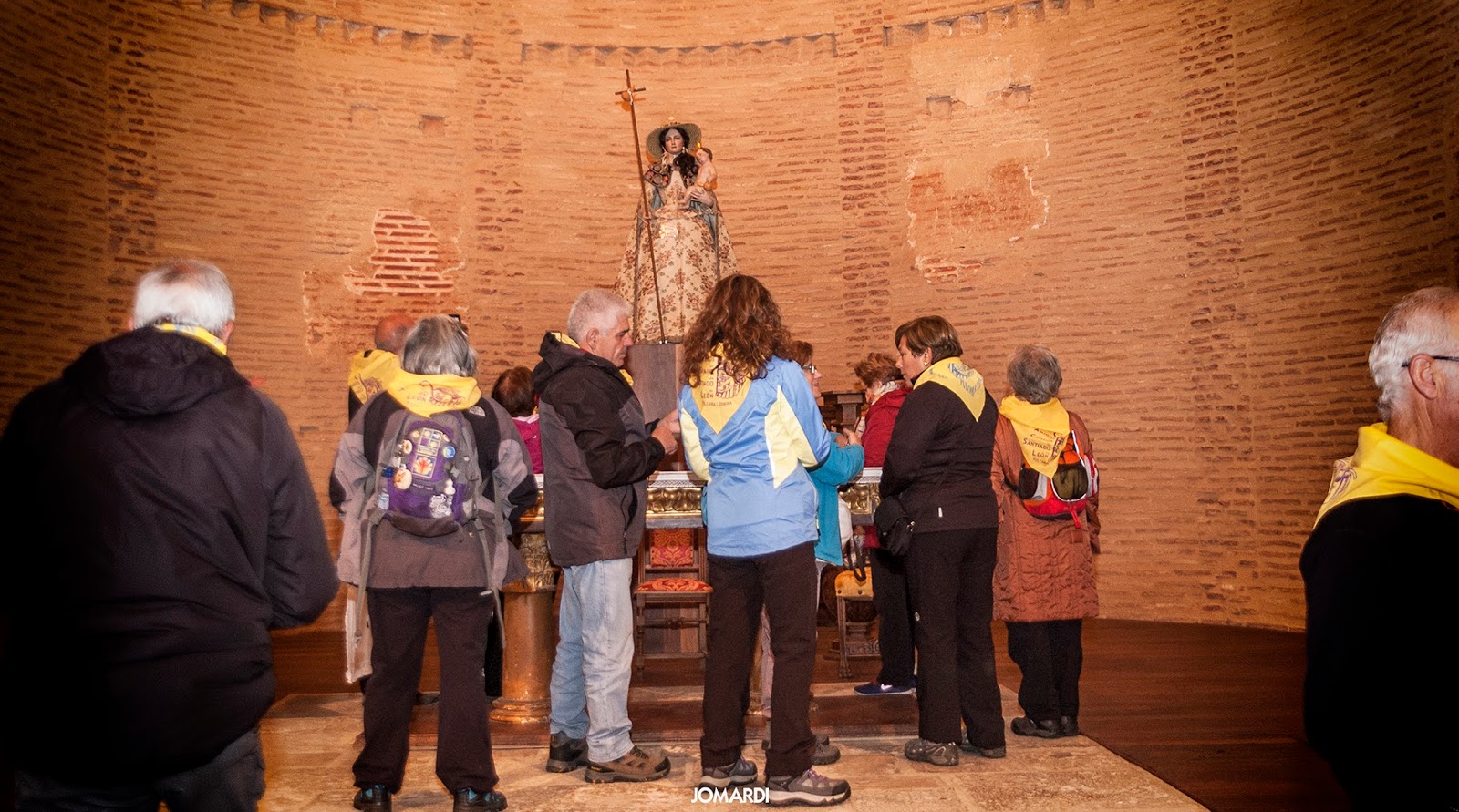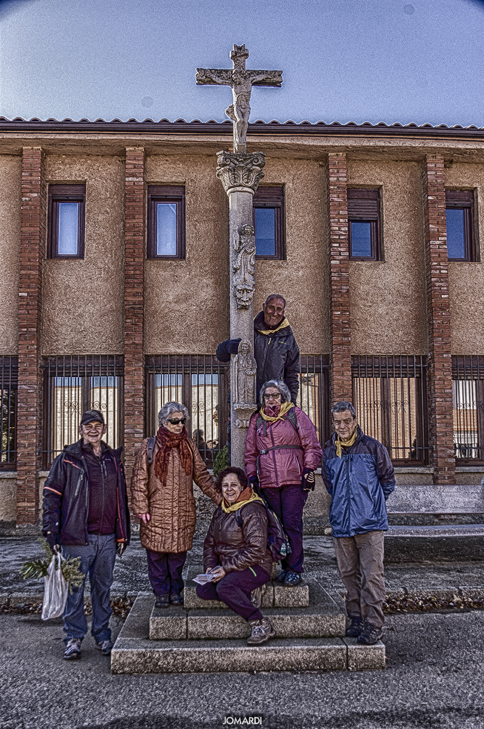 Terminada la labor, nos reunimos en una comida de convivencia entre peregrinos en Sahagún, y como es habitual, entonamos el himno de nuestra Asociación. Para terminar la jornada nos fuimos caminando hasta el Santuario de la Peregrina para visitar la exposición de Juan Crisóstomo Torbado, que lleva por nombre «Hombre, Arquitecto y Artista».