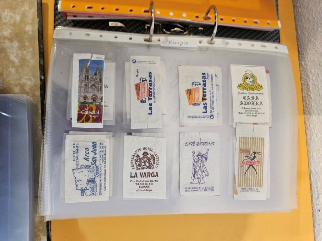 Todos estos sobres, y algunos más que recibía de amigos y de intercambios, fueron apilándose en sacos y cajas, y no fue hasta 2020 cuando, como consecuencia del confinamiento decretado por la pandemia del Covid-19, Daniel empleó gran parte del tiempo (y que no era poco) en ordenar todos esos sobres vacíos de azucarillos, colocándolos en marcos y láminas ordenadas en archivadores.