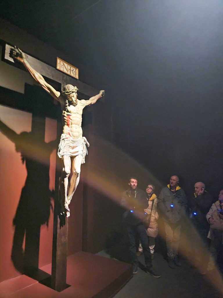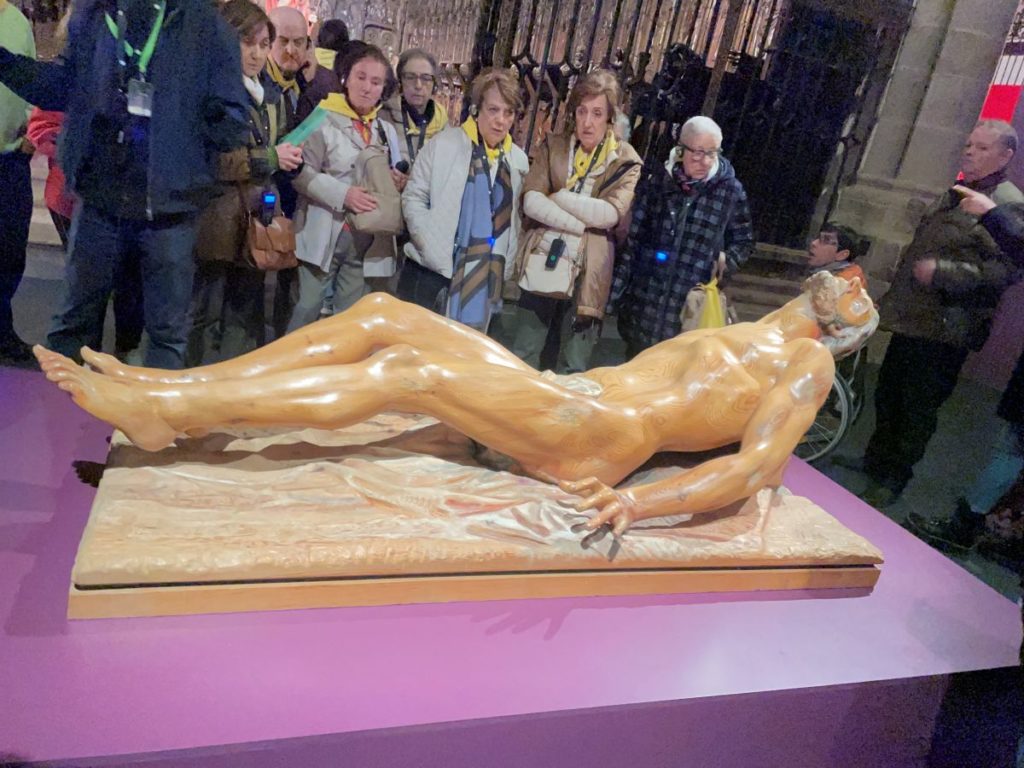 La parte de la exposición que se muestra en la Catedral recoge tres momentos: Pasión, Resurrección y Misión, y cada uno tiene a su vez tres movimientos.