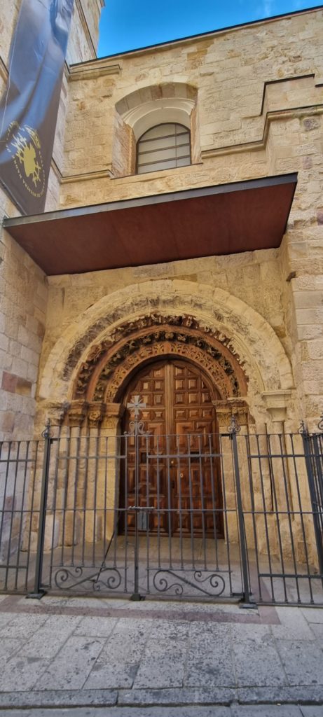 Nos dividimos en dos grupos para realizar la visita guiada. Tuvimos tiempo de tomar algo en una cafetería frente al teatro Ramos Carrión y a la hora fijada nos dirigimos al punto de inicio de la exposición, la iglesia de San Cipriano, al lado del Albergue de Peregrinos de Hospitaleros Voluntarios donde esta quincena estaban Alain de Francia y Manuel de Bilbao con los cuales pudimos charlar. Esta joya del románico alberga el PRELUDIO.