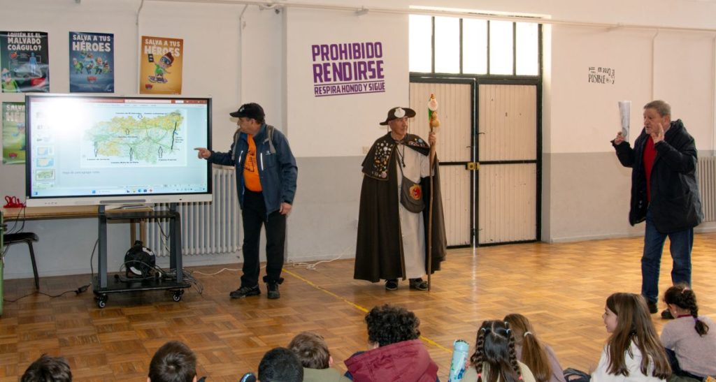 Y su centro educativo, el CEIP TREPALIO, sea también por su situación a la vera del Camino, sea por el conocimiento que sus alumnos tienen del recorrido por el que ven pasar muchos peregrinos por las proximidades de sus viviendas o sea porque el profesorado cree que el tema del Camino de Santiago bien merece una actividad especial dentro de su currículum, el caso es que han vuelto a solicitar nuestros servicios para exponer a su alumnado nuestro proyecto educativo.