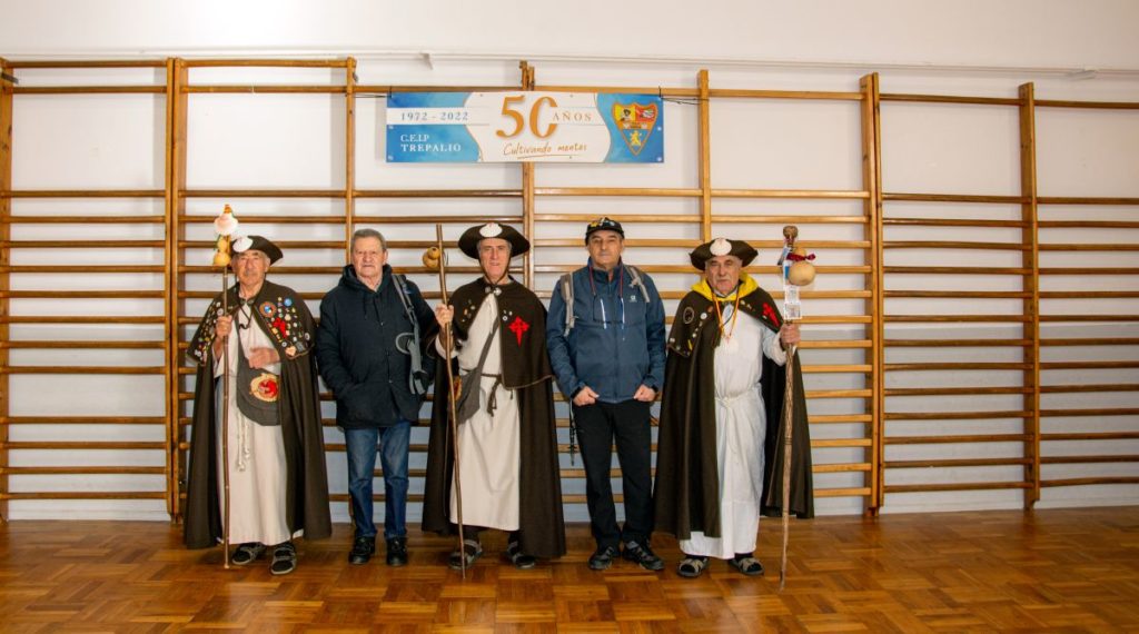 Los compañeros, ataviados con el típico traje medieval del peregrino, les explicaron los nombres y la utilidad de cada una de las partes que componen su vestimenta comparándola con la indumentaria que portamos los peregrinos actuales.