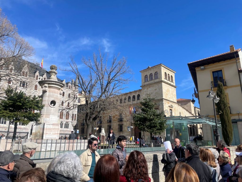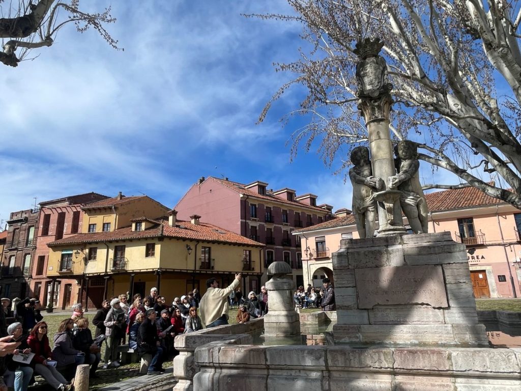 Desde el Espacio Cultural de la Asociación Amigos del Camino de Santiago de León “Pulchra Leonina”, se programó una visita guiada por graduados en Historia de la ULE (Javier y Álvaro, miembros de la Asociación «La Cuelga»), a El Periodo de la Ilustración en León (“Las Fuentes”) el día 28 de febrero de 2026 y a la que asistimos 35 socios.