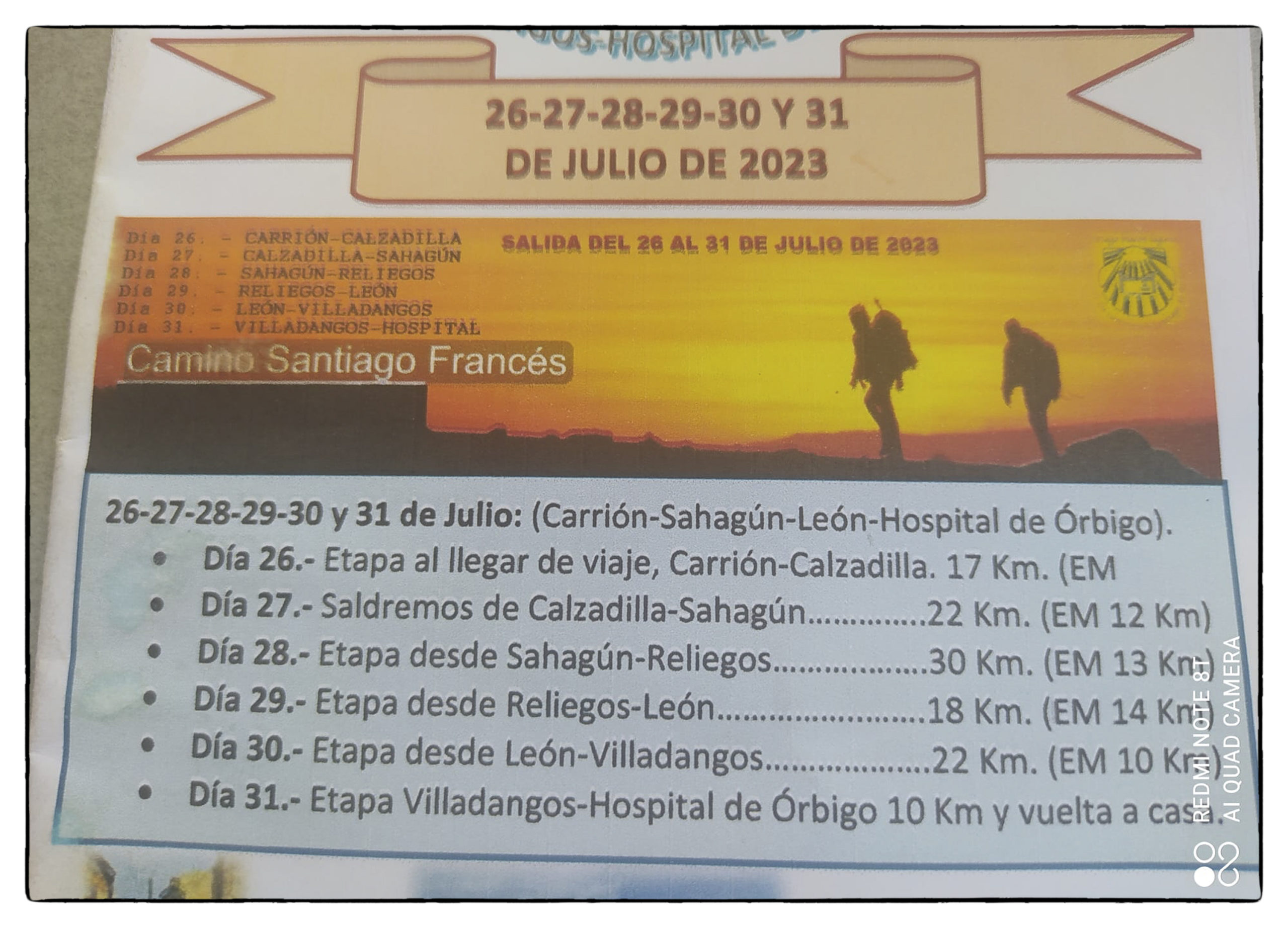 La última semana de julio la asociación de Bilbao ha realizado un tramo del Camino Francés entre Carrión de los Condes y Hospital de Órbigo, teniendo como base para todo el trayecto un hotel de la ciudad de León.