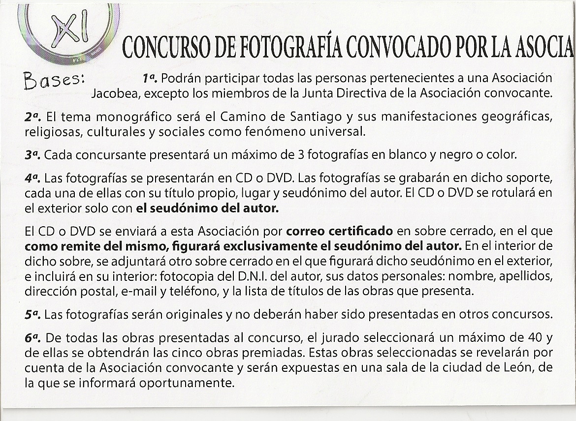 - 1.ª Podrán participar todas las personas pertenecientes a una Asociación Jacobea, excepto los miembros de la Junta Directiva de la Asociación convocante.